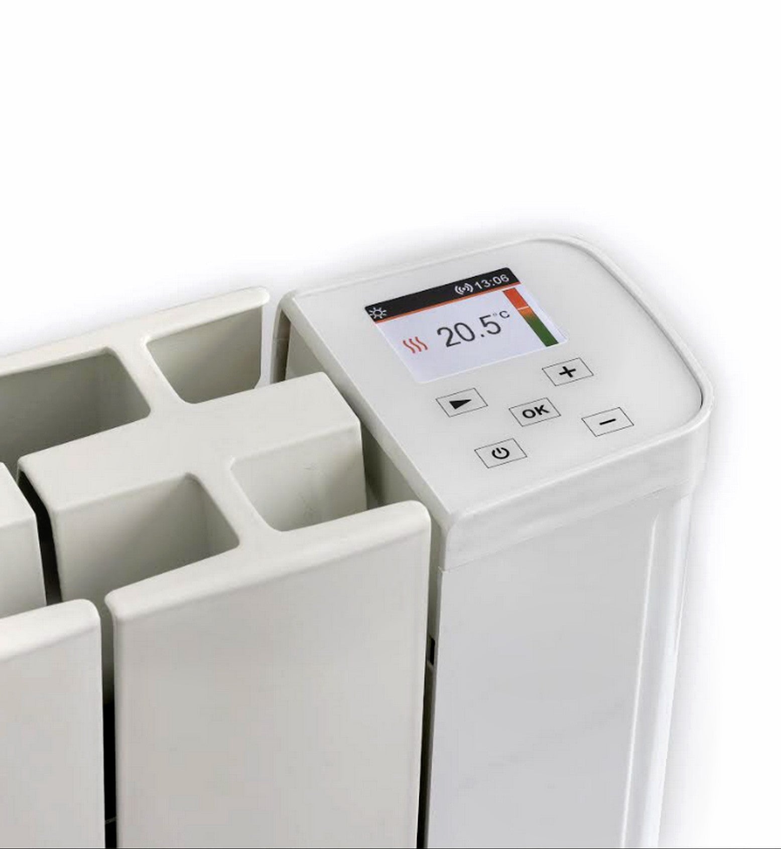 Grâce à ses commandes numériques intégrées disponibles à partir de l'écran LCD de grandes dimensions, il est possible de régler la température souhaitée et d'activer les fonctions d'économie d'énergie telles que : la détection automatique de fenêtre ouverte et l'ASC, contrôle personnalisé du démarrage pour obtenir la température souhaitée à l'heure prédéfinie. De plus, avec l'option Smart Lock, il est possible de verrouiller l'ensemble des fonctions du radiateur et d'éviter toute modification des paramètres.